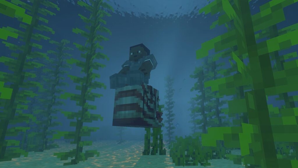 Grants the Breath of the Nautilus effect, freezing the oxygen bar so players do not drown while riding. - Attracts drowned naturally.